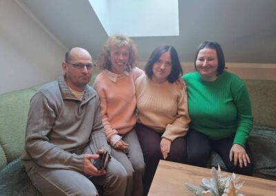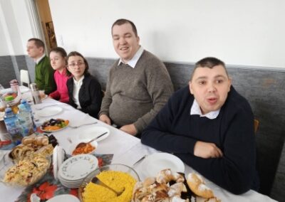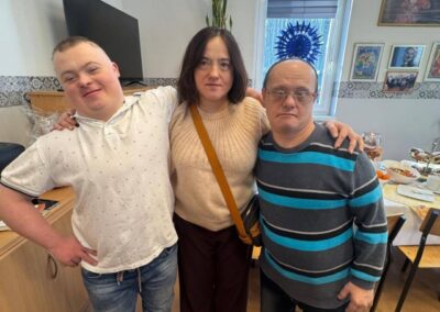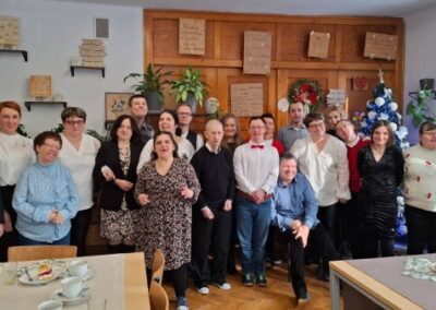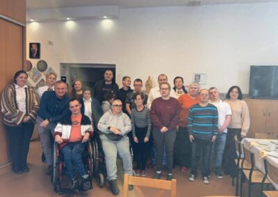 Spotkania upłynęły w bardzo miłej, rodzinnej atmosferze. Przepełnione były wieloma rozmowami oraz mnóstwem uśmiechów. Podczas odwiedzin nie mogło zabraknąć części artystycznej oraz pysznych poczęstunków, które ze starannością przygotowywali uczestnicy wraz z instruktorami. Niezmiernie cieszymy się z tej wizyty oraz wspólnie spędzonego czasu.